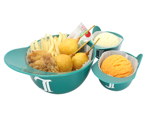 | 商品紹介 | から揚げ、フライドポテト、チーズドッグをまとめたとてもよくばりなセットをエメラルドヘルメットバージョンで! |