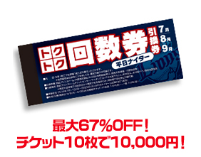 好評販売中!最大67%OFF「7・8・9月トクトク回数券」を(10枚つづり10,000円)で販売!