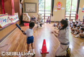 こどもたちへの心身育成の一環として活動している「レオ・ライナと楽しく遊ぼう!」プロジェクト。今月は朝霞市、狭山市、新座市、飯能市、日高市とたくさんの地域へ訪問し、ブルーレジェンズ、レオ、ライナと楽しくダンスや野球レクリエーションでスポーツを通じて交流しました。