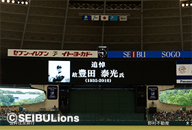 本日8月19日(金) 対 千葉ロッテ戦において、8月14日(日)に亡くなられました元西鉄ライオンズ内野手 豊田泰光氏への追悼の意を表し、球団旗を弔旗とし喪章を着用して試合を行いました。