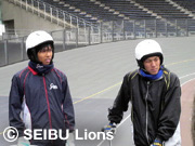 MY PAGE24日(土)西武ドームから程近い、西武園競輪場で新人自主トレが行われ坂田遼選手・岳野竜也選手・宮田和希投手の3選手が参加しました。