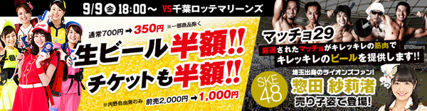 | 日時 | 9月9日(金) 対 千葉ロッテマリーンズ戦 |