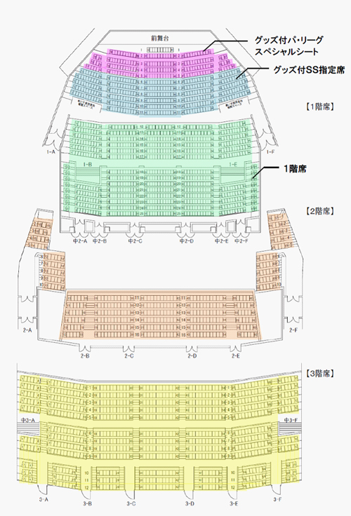| 料金(税込) | グッズ付き パ・リーグスペシャルシート | 18,000円 | | グッズ付SS指定席 | 6,800円 | | 1階席 | 4,500円 | | 2階席 | 3,200円 | | 3階席 | 2,400円 | - ・全席指定