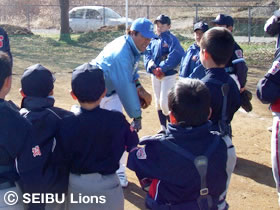 MY PAGE埼玉西武ライオンズが取り組んでおります野球支援活動の一環として、2月8日(日)に深谷市リトルリーグ岡部東グラウンドにおいて、軟式少年野球チームとリトルリーグの小学生61名を対象に、「埼玉西武ライオンズ野球教室」が開催され、講師として、ライオンズOB松沼雅之さんと垣内哲也さんが参加いたしました。