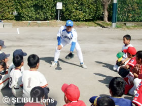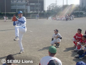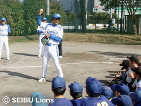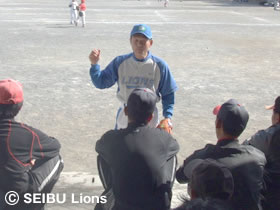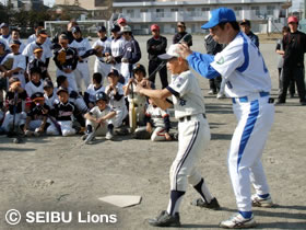 MY PAGE埼玉西武ライオンズが取り組んでおります野球支援活動の一環として、2月14日(土)に八潮市八潮中学校グラウンドにおいて、軟式少年野球チーム200名を対象に、「埼玉西武ライオンズ野球教室」が開催され、ライオンズOB清水宏悦さん、駒崎幸一さん、上田浩明さん、安藤信二さんの4名が講師として参加いたしました。