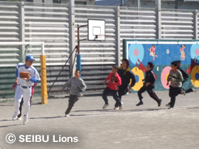 次に校庭に移動し、キャッチボールをはじめとする基本指導を行い、野球経験の児童からは、活発な質問が飛び交っておりました。