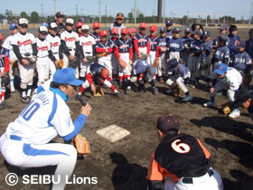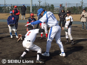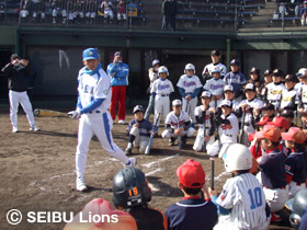 MY PAGE埼玉西武ライオンズが取り組んでいる野球支援活動の一環として、3月7日(土)に鴻巣市吹上総合運動場において、軟式少年野球7チームの小学生70名を対象に、「埼玉西武ライオンズ野球教室」を開催、高木大成(球団事業部)が講師として参加いたしました。