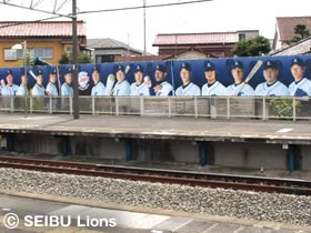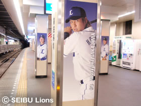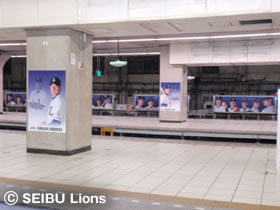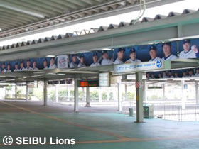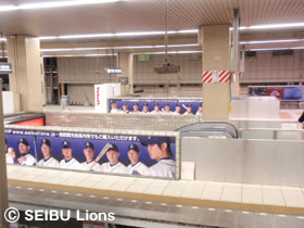 また、ライオンズイケメン軍団のフラッグやポスターを駅全面に貼り巡らせ駅を ジャックしライオンズ一色に染め上げます。