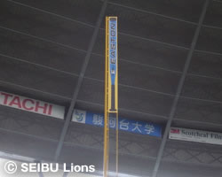 MY PAGE| 埼玉西武ライオンズでは、米国スポーツブランド「イーストン(EASTON)」社と ともに、西武ドーム両翼にあるファールポールを使用した日本初のバット型 ファールポール広告を展開しています。 そのイーストン社からライオンズファンクラブ会員の皆さんにうれしいお知らせです! 2009年度レギュラーシーズンでライオンズ選手の打球が「EASTON」のファールポール広告に当たった場合には、ファンクラブ会員の方を対象に抽選で、ライオンズ球団創立60周年にちなみ60名様へイーストン製木製バットなどを プレゼントします。 | ![]() |
