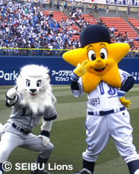 MY PAGE| 6/6(土)横浜スタジアムで行われた日本生命セ・パ交流戦 横浜ベイスターズVS埼玉西武ライオンズに、「レオ」「ライナ」が登場し、ベイスターズのマスコット「ホッシー」「ホッシーナ」「ホッシーゾ」とともに、写真撮影会を中心にビジターゲームのひと時を過ごしました。 また、グラウンドからのパフォーマンスタイムでは、バズーカー打ち上げプレゼント、そしてライオンズファンの皆さまからの熱いレオコールを受け、得意のバク転を披露するなど、選手への応援はもとより、レオ、ライナの登場時にはたくさんのご声援をいただきありがとうございました!西武ドームでも引き続きのご声援をお願いいたします。 | ![]() |