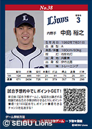 MY PAGE| 今年も大人気!ファンクラブ会員の皆様へ、来場ポイントアップ時に配布している選手カード。 7月開催試合における配布選手は下記の通りです。 7月は、マイページ「お気に入り選手登録」でも圧倒的な人気を誇る中島選手が登場! ご来場の際は、会員証を持ってファンクラブカウンターにお越しください。 ライオンズ戦士の躍動感あふれるワンショットをどうぞお楽しみください。