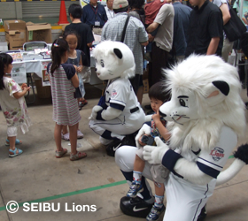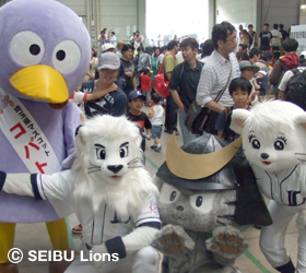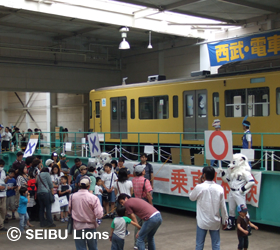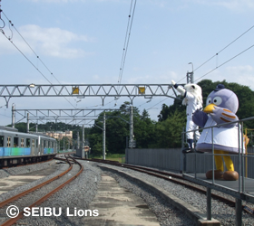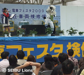 MY PAGE6月7日(日)、埼玉県・日高市武蔵丘車両検修場において「西武・電車フェスタ2009」が開催され、球団マスコットキャラクター“レオ&ライナ”が遊びに駆けつけました。 飯能からの臨時電車が到着し、“レオ&ライナ”と埼玉県マスコット“コバトン”が来場の皆様をお出迎えいたしました。