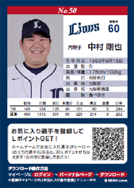 MY PAGE| 今年も大人気!ファンクラブ会員の皆様へ、来場ポイントアップ時に配布している選手カード。 8月開催試合における配布選手は下記の通りです。 8月4日に開催する県営大宮球場での試合では、埼玉県出身の人気者、平尾選手が登場! ご来場の際は、会員証を持ってファンクラブカウンターにお越しください。 ライオンズ戦士の躍動感あふれるワンショットをどうぞお楽しみください。