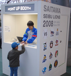 入場ゲート内、ライオンズ側(1塁)は、レオと30周年のロゴをデザインしたブースで、ビジター側(3塁)は、11球団のロゴをデザインしたブースです。