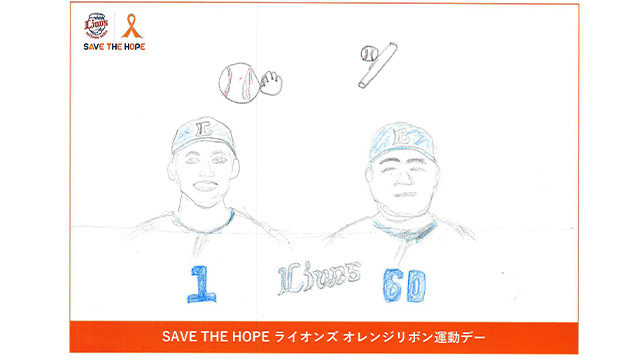 『SAVE THE HOPE ライオンズ オレンジリボン運動デー』実施にあたり、3月11日(土)~4月16日(日)の間、『親子おえかきコンテスト』の作品を募集しておりました。本企画にご賛同いただきご応募いただきました皆さま、誠にありがとうございました。ご応募いただいた作品の中から「最優秀賞」を1作品、「優秀賞」を25作品選出いたしました。受賞作品は以下よりご確認ください。各受賞作品は試合日当日にベルーナドーム1塁側のトレイン広場に設置している「L-train 101」への展示を予定しています。ファンの皆さまもぜひ、お立ち寄りください。