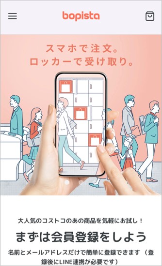 BOPISTA(ボピスタ)は、商品をスマホから注文し、駅などに設置されたスマートロッカーで受け取るサービスです。注文から最短3時間、好きな時間に商品をお受け取りいただけます。冷蔵商品を含む150種類以上の豊富な商品を、1点からご購入できます。