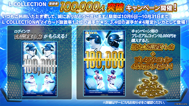 期間中にログインすると登録者10万人突破記念★4カードがゲットできるログインボーナスや、イベント用アイテムを購入すると豪華特典がもらえる還元イベントなど、シーズンの盛り上がりそのままにL