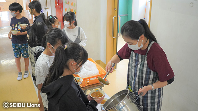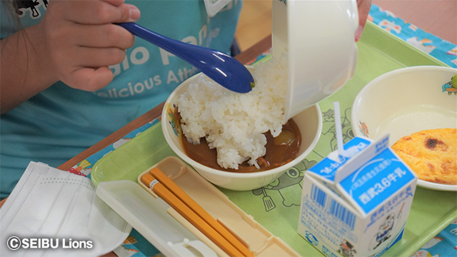 本日11月7日(火)、ライオンズの選手なら一度は食べたことのある若獅子寮の名物「若獅子カレー」を、『彩の国ふるさと学校給食月間』の取り組みの一環として、日高市内小中学校の給食メニューとして初めて提供いただきました!若獅子カレーを食べることを通じて、給食の意義や役割について理解や関心を高め、そしてライオンズの選手と同じ気持ちになってくれたら嬉しいです!