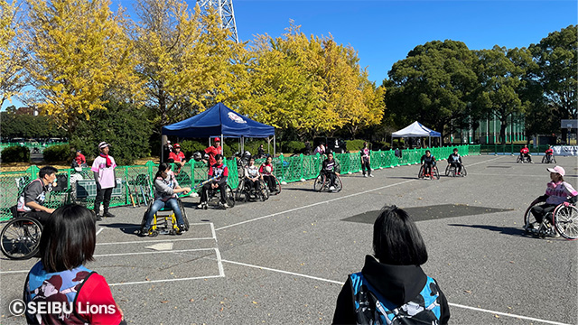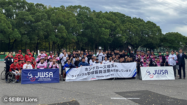 初日の開会式では、野球振興スポンサーの株式会社ホンダカーズ埼玉 代表取締役社長 上山英樹氏がバッター、ライオンズの代表取締役社長 奥村剛がマウンドに立ち、そしてキャッチャーには日本車椅子ソフトボール協会会長 高山樹里氏が登場し、より大会を盛り上げました。2日目には車椅子ソフトボールの体験会も開催され、さらなる賑わいを見せました。