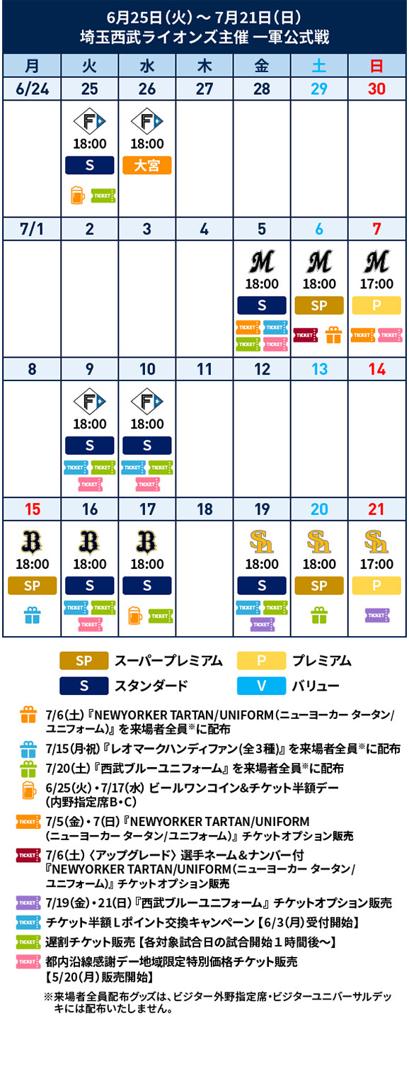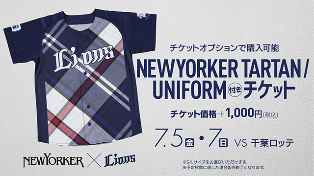 「LIONS COLLECTION(第2弾)」限定の「NEWYORKER TARTAN/UNIFORM(ニューヨーカータータン/ユニフォーム)」や「西武ブルーユニフォーム」の配布日など人気試合のチケットはお早めにご購入ください!