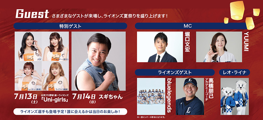 「ライオンズ夏祭り2024」を盛り上げる『ライオンズゲスト』が両日来場します!