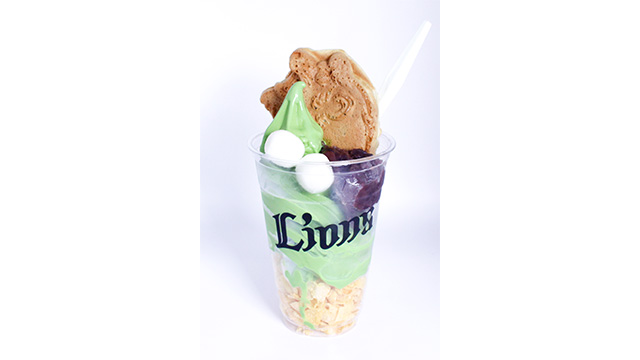 また、「COOL」なグルメには、皆さまからご好評いただいている「ライオンズ焼き(あんこ)」を使ったパフェが登場!狭山抹茶を使用した抹茶ソフトクリームに、ライオンズ焼きをおいしさそのまま大胆にのせています。ソフトクリームに添えられたあんこは、パフェに合わせて甘さ控えめと味にもこだわって仕上げた商品です!こちらの商品は、1塁側狭山茶処 新井園本店にて販売いたします。ぜひご賞味ください!
