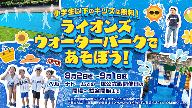 「Lions Water Park(ライオンズウォーターパーク) 」と「テイキョウキッズフィールド 最大30分間遊び放題」で、夏休みはベルーナドームで遊びつくそう!