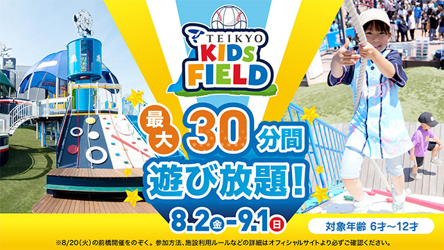 ライオンズフェスティバルズ2024期間中は、6才~12才のお子さま向けの屋外施設『テイキョウキッズフィールド』を無料開放!最大30分間遊び放題(※)となります。