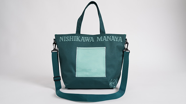 隅田投手がプロデュースしたトートバッグは、「ベルーナドームへ行こう!」の直筆デザイン入り。