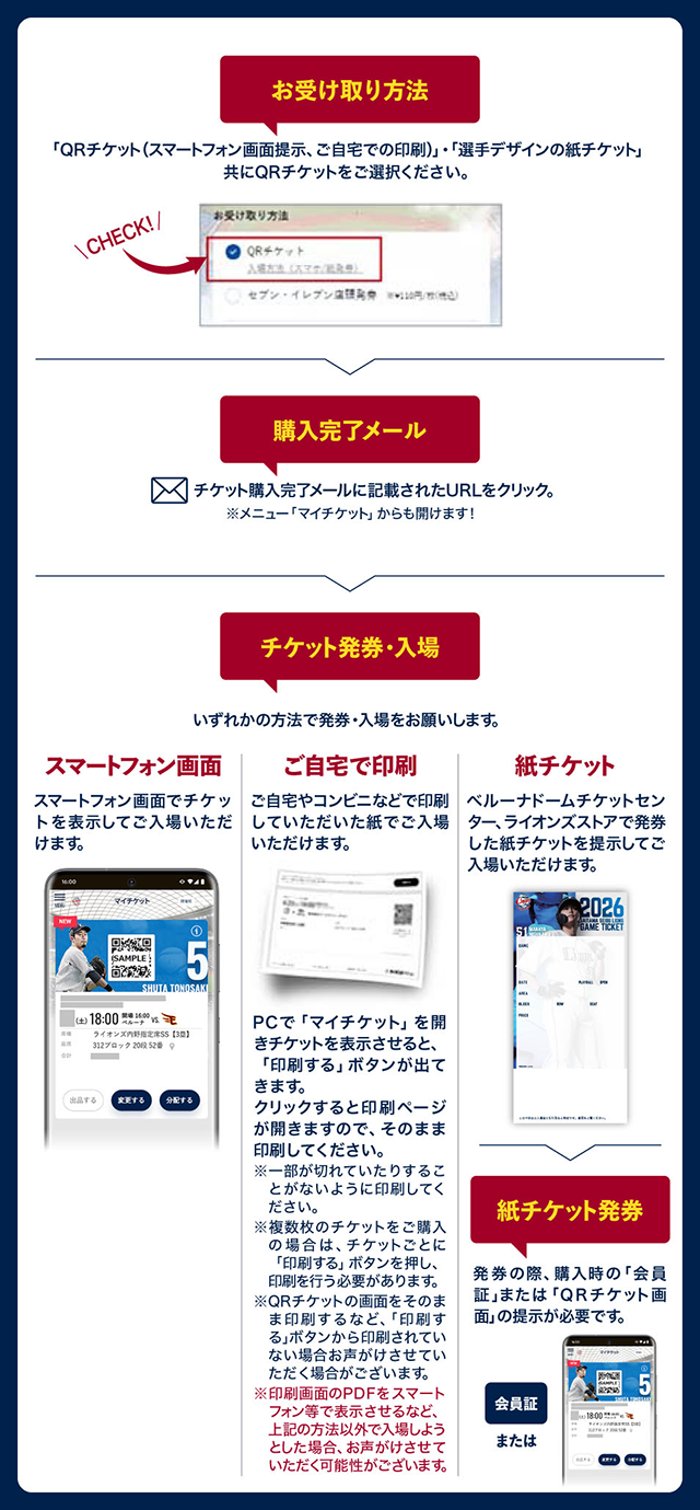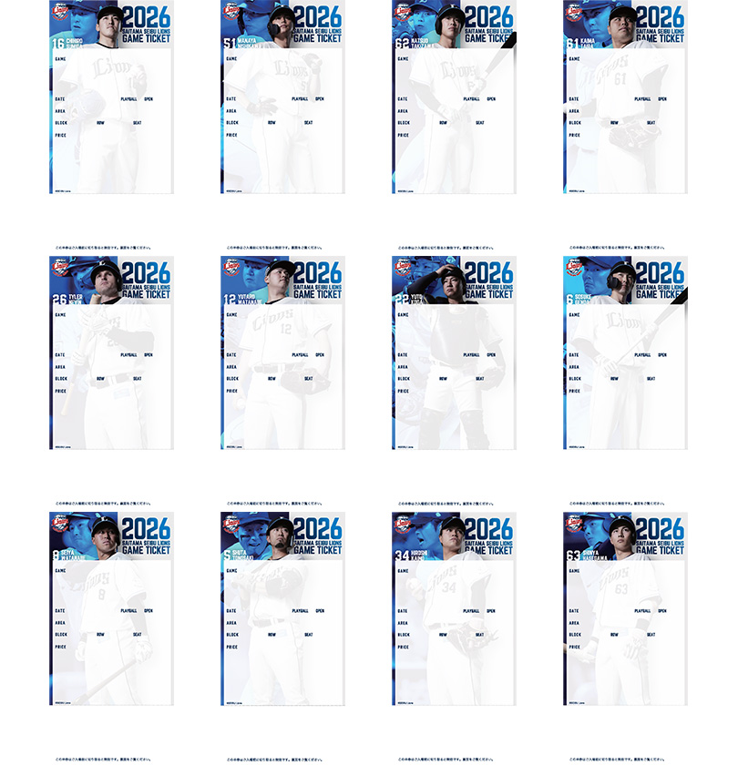 また、ライオンズチケット(web)で購入の場合も、購入時に『QRチケット』を選択すれば選手デザインの紙チケットを発券することが可能です。