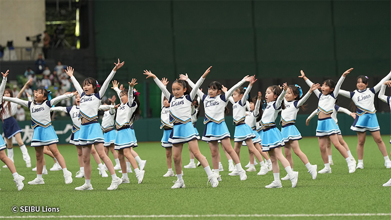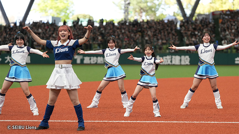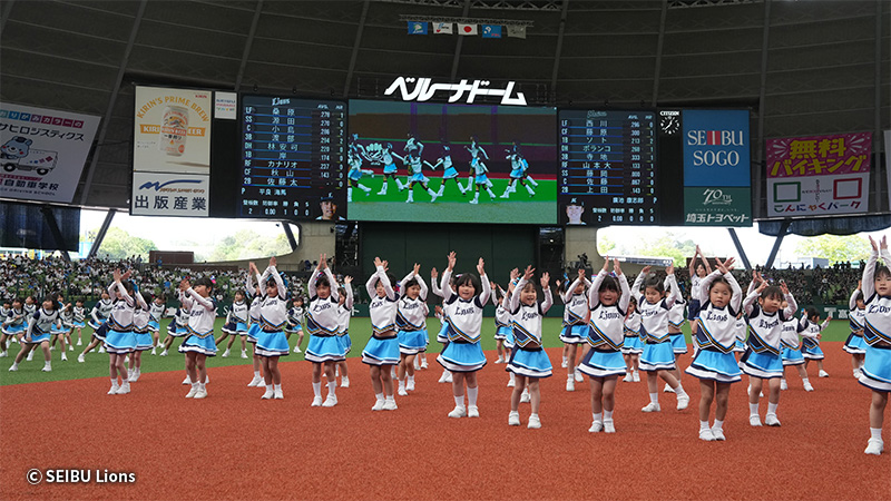 4月12日(日)にベルーナドームで開催した千葉ロッテマリーンズ戦の試合前に「ライオンズダンスアカデミー」のグラウンドパフォーマンスを実施しました。