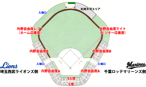 ※ホーム応援席でマリーンズの応援はできません。またビジター応援席でライオンズの応援はできません。あらかじめご了承の上、チケットをご購入ください。
