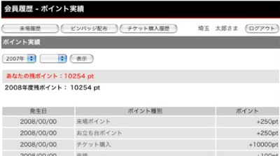 獲得ポイント数やポイント加算日を一目で確認することができます。