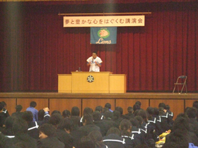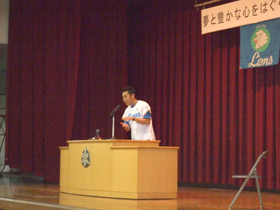 ライオンズでも夢に向かい希望と勇気をもってやり遂げる態度を育てることを推進し、全校生徒375名を対象に、「夢を叶えるために大切なこと」と題し、講話を行いました。