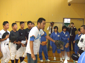 「今日は、僕達のために講演をしていただきありがとうございました。夢を叶えるために努力の大切さを知ることができました。また、野球指導をしていただき、高校に行っても続けて頑張っていこうと思いました。」