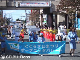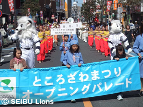 “ところざわまつり”の開会式やオープニング・パレードに参加したライオンズマスコットキャラクター・レオとライナは、沿道を埋め尽くした市民の皆様から「レオくん、ライナちゃん!」と声援をいただき、西武ドームを飛び出しても相変わらずの人気者でした。