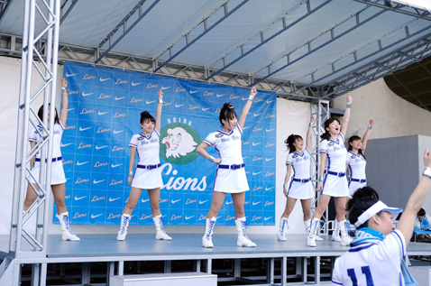 一緒に歌を歌ったり、手拍子したり、試合前のひとときを楽しみましょう。「信じるものがすべて・・・♪」と、ライオンズを応援する気持ちを込めて、一緒に歌いましょう。後は、ステージを見てのお楽しみ・・・。
