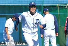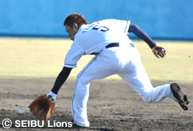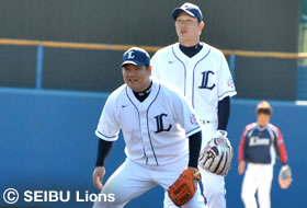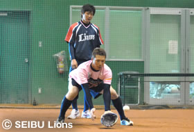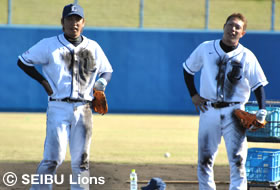 | 連日特守を行う石井義人選手 | 守備強化中!中島選手&石井義人選手 |