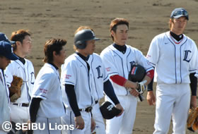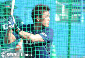 | 野手陣集合!コーチの指示を仰ぐ | 片岡選手 特打で快音を響かせる |