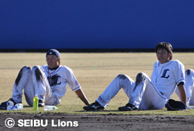 | 個人強化練習が終わったあとの細川選手 | 特守が終わったあとの上本選手、松坂選手 |