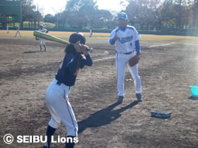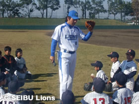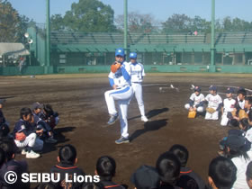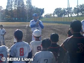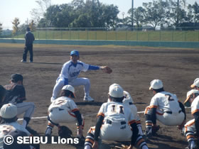 MY PAGE埼玉西武ライオンズが取り組んでいる野球支援活動の一環として、11月21日(土)に埼玉県騎西町の騎西町田ヶ谷サン・スポーツランドにおいて、騎西町はじめ近隣町の軟式少年野球6チームの小学生約80名を対象に、「埼玉西武ライオンズ野球教室」を開催しました。