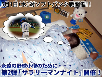 日頃忙しい毎日を送っているサラリーマン(OL)の皆さまにリニューアルされた西武ドームのグランドを使って思いっきり楽しんでいただきたいと思い第1回サラリーマンナイトを4月10日(木)に実施しました。