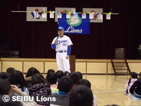 MY PAGE埼玉西武ライオンズでは、青少年への健全育成に寄与する活動の一環として、11月24日(火)に深谷市立川本南小学校へ、球団OB大塚光二氏が訪問いたしました。