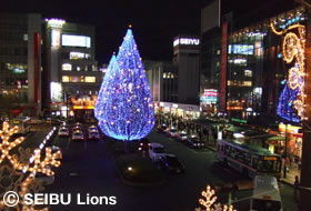 涌井投手、赤田選手が灯した63,000本のイルミネーションが、クリスマスまで所沢の夜を華やかに輝かせます。