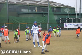 ライオンズでも未来を担う青少年の育成を図ることを推進し、今回は埼玉県内に在住する小学生60名を対象に野球教室を行いました。