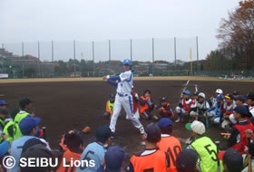 MY PAGE埼玉西武ライオンズでは、青少年への健全育成に寄与する活動および野球支援活動の一環として、11月29日(土)に西武第二球場おいて「埼玉西武ライオンズ野球教室」を開催し、球団OB安藤信二氏と大友進氏が講師を務めました。