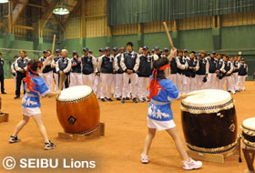 | 【南郷】園児達の太鼓に癒される | 【所沢】初日から精力的に練習する投手陣 |