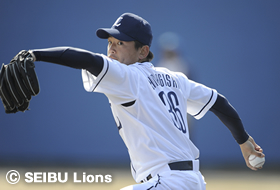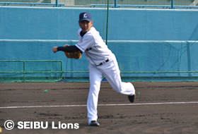 山岸投手は打者との対戦で、一球一球自分のフォームを意識し、キャンプの仕上がり具合を確認していました。
