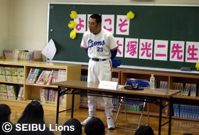 MY PAGE2月10日(水)青少年の健全育成に寄与する活動の一環として、志木市立宗岡小学校へ球団OB大塚光二氏が訪問いたしました。