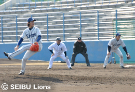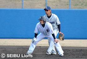 | 紅白戦初登板の涌井投手 | 同級生コンビ!片岡選手と中島選手 |